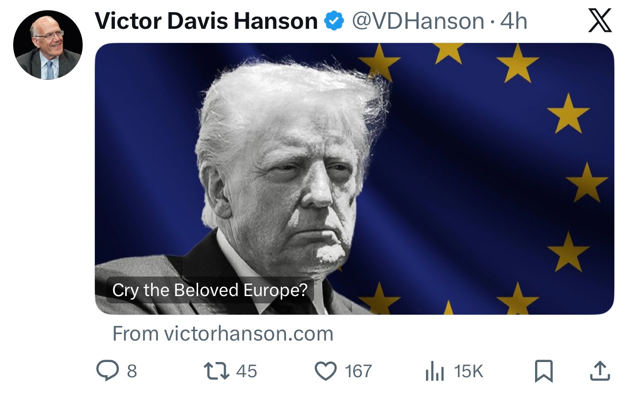 Europe’s overregulation and war on fossil fuels, combined with a generous social welfare state, have resulted in too little revenue and too many costly dependents.Americans dare to lecture Europe because the same Western pathologies—open borders, unassimilated immigrants, tribalism, declining fertility, green fanaticism, unsustainable budget deficits, and massive national debt—are likewise beginning to threaten America.
