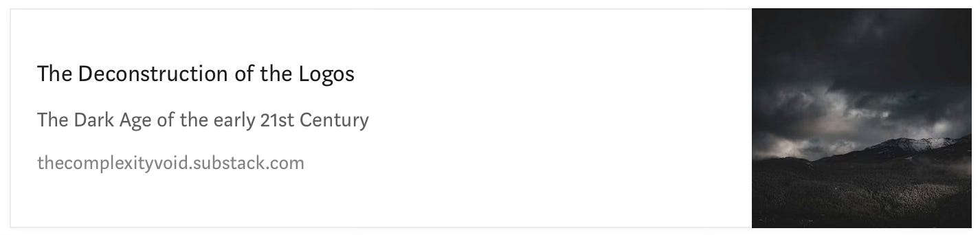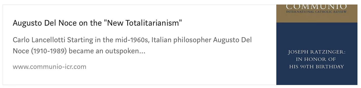 20th Century Philosopher Augusto del Noce was influenced by Guénon’s thesis in The Crisis of the Modern World [LINK] and argues that modern rationalism's real sin is not excessive reason, but its presumptive denial of any higher source of truth and meaning.