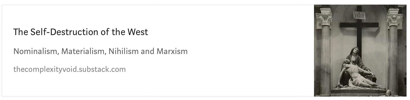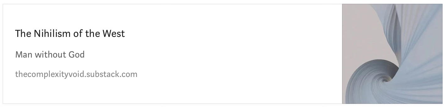 Nihilism [LINK] emerges through Western Civilisation abandoning its Spiritual and Transcendental Foundations.
