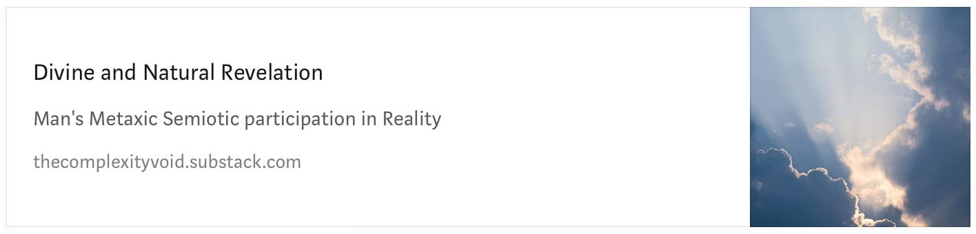 The Metaphysical relationships between the Necessary Being of God (Creator), the Contingent Being of Conscious Man (Created), and the Natural World (Created). [LINK]