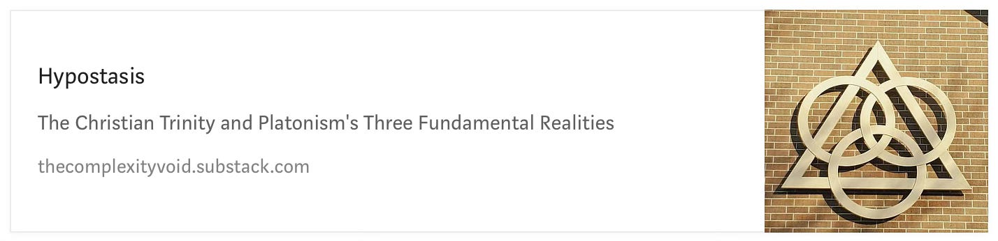 Or as outlined in Hypostasis - The Christian Trinity and Platonism’s Three Fundamental Realities [LINK], the denial of Plato’s Realm of the Forms - eternal, immutable, and perfect realities - that ground all sensible things. [LINK]