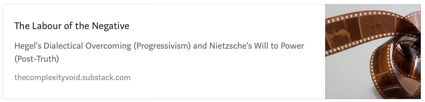 The Labour of the Negative, a Hegelian Dialectical Progressivism and Nietzschean Post-Truth Will to Power [LINK].