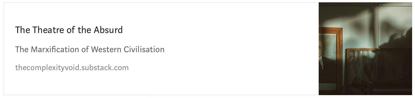 Or alternatively, was this another example of Western Civilisation entering the Theatre of the Absurd [LINK] via the anthropomorphism of Theology (e.g. endemic Marxism [LINK]), Philosophy and Metaphysics [LINK].
