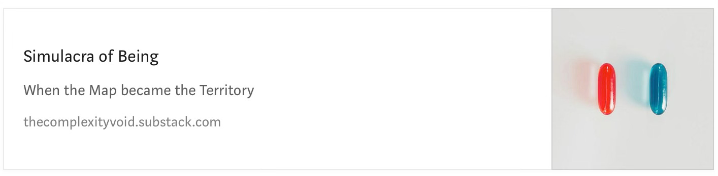 Had we embraced a Simulacra of Being [LINK] where the representation (mediated via signs) increasingly bears no relation to Reality?