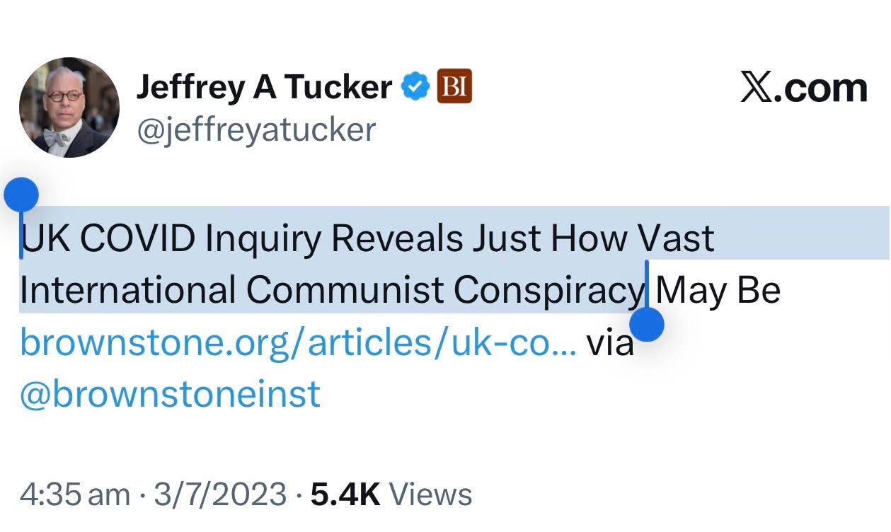 [LINK] - UK COVID Inquiry reveals just how vast the International Communist Conspiracy may be