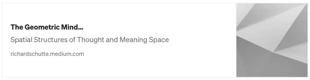 Ideas that were also outlined in the Geometric Mind which explored the high-dimensional relationships of mental concepts and relationships by the Human Mind. The Spatial Structures of Thought and Meaning Space.