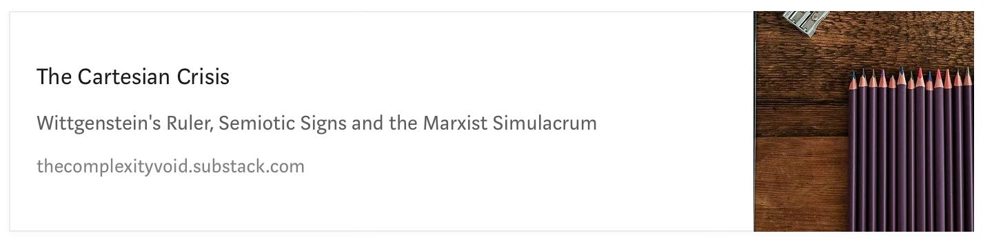 [ LINK] - The Cartesian Crisis - Wittgenstein’s Ruler, Semiotic Signs and the Marxist Simulacrum