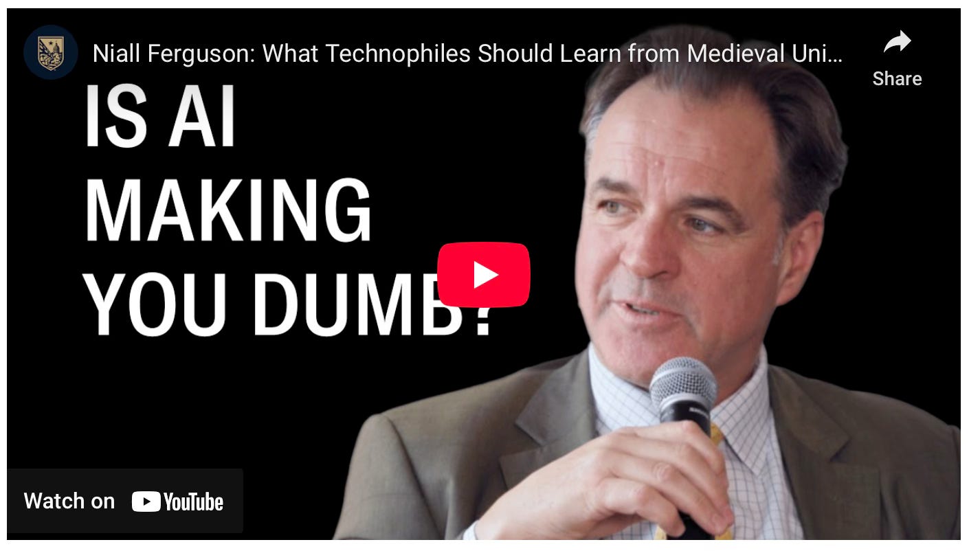 Is AI making you dumb? - Niall Ferguson: What Technophiles Should Learn from Medieval Universities [ LINK ];