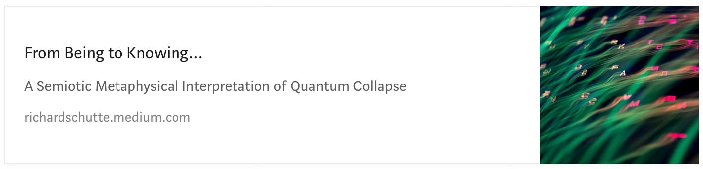 Being becomes relationally self-evident (Heidegger - pre-conceptual lived experience, Husserl - Intentional Consciousness, Peirce - Semiotic Triadic); and