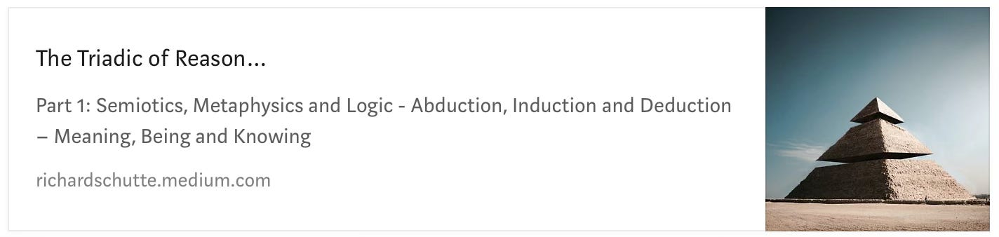 Peirce's Phenomenological Categories of Meaning, his triadic system of categories (Firstness, Secondness, Thirdness) was not merely a classificatory scheme for modes of Being —it was a comprehensive philosophical framework designed to unify the mind & world, abstraction & embodiment, subjectivity & objectivity through a dynamic theory of signification, or semiosis.