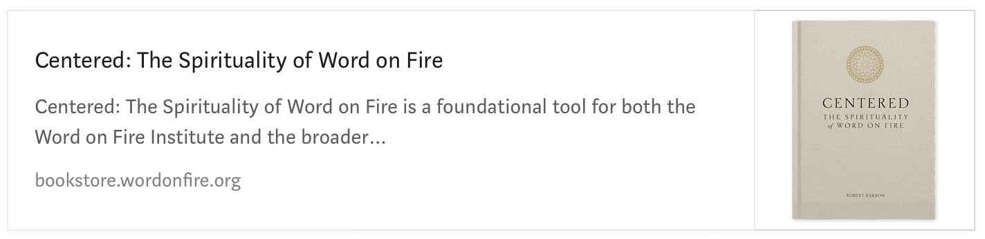 - Robert Baron, Centered: The Spirituality of Word On Fire