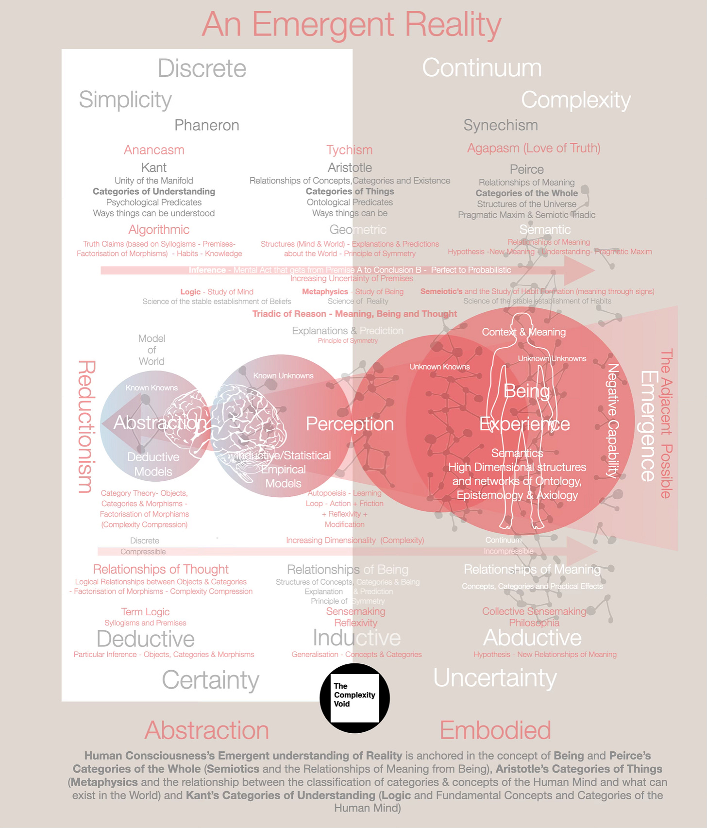 The emergence in the 20th Century of Charles Sanders Peirce’s Semiotics and Abductive Reasoning that combines Observer, Sign and Observed into a Relationship of the Whole — an Embodied Form of Reason (i.e. the Meaning of a concept is tied to Practical Consequences) — a Relationship of Meaning — a Semiotic Triadic.