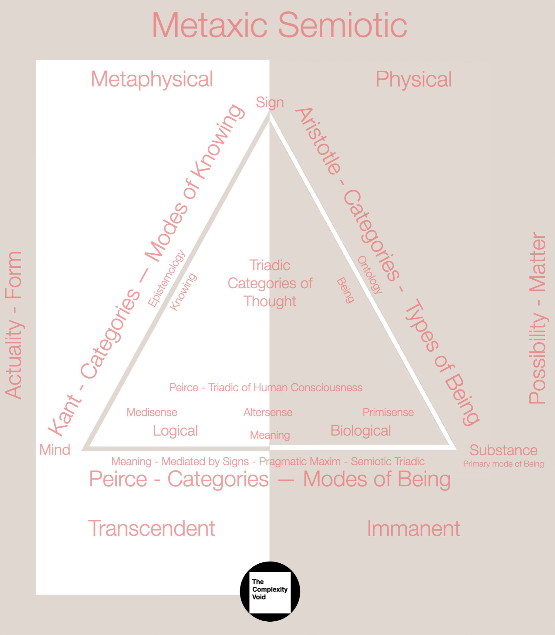 Peircian Semiotics — Representamen (Relationship of Meaning ) — Categories of the Whole — Dynamic & Process Orientated — The relational structure (relationships of meaning (Semiotics) between our Mind and the Universe (Peirce). Abductive reasoning enables potential new relationships of meaning thereby revealing a hypothesis of a possible new premise about the World. The Mode of Being of Individuals that reflects our physical entanglement (Mind & Body and Self & Non-Self) in the Immanent World;