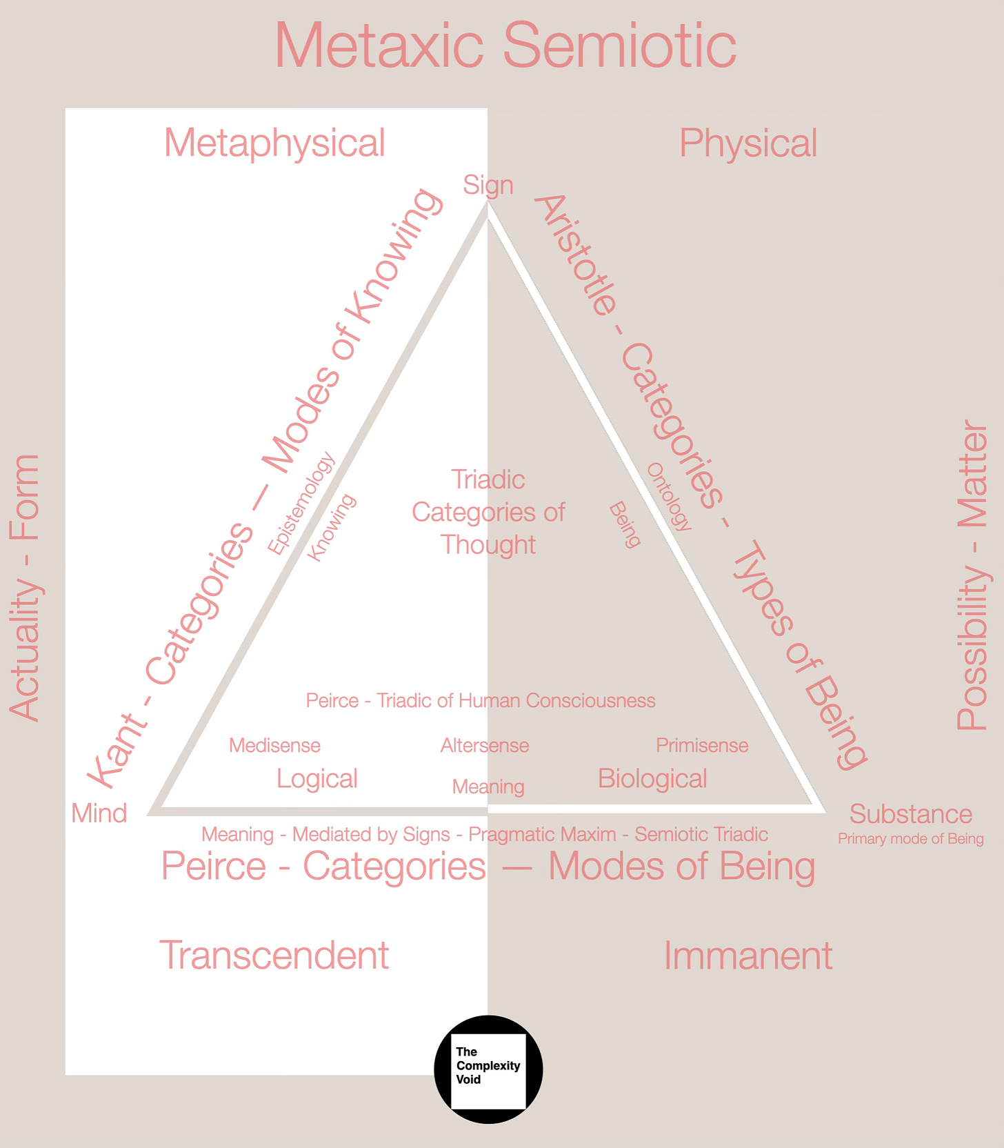 Meaning — Why do things Relate? — Peirce — Category of the Whole (Relationships of Meaning) explains the dynamic processes (firstness, secondness and thirdness) of how new meaning emerges through the interplay between existence, knowing and interpretation. How we engage with and interpret Reality through embodied experiences, cognitive abstraction and relationships of concepts and categories mediated through a web of semiotic signs — Signs, Meaning, and Practical-Effects that shape the formation of Habits and Heuristics
