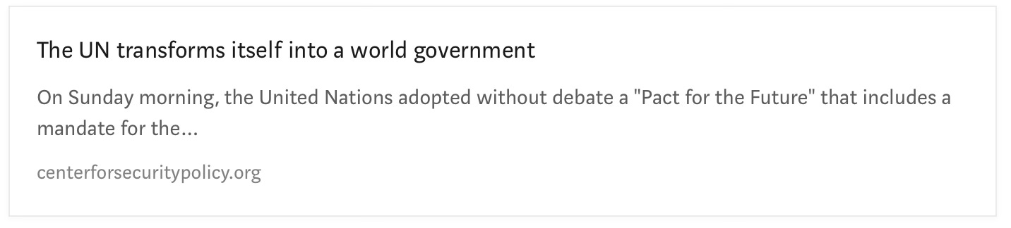 [LINK] - Center for Security Policy - The UN transforms itself into a world government